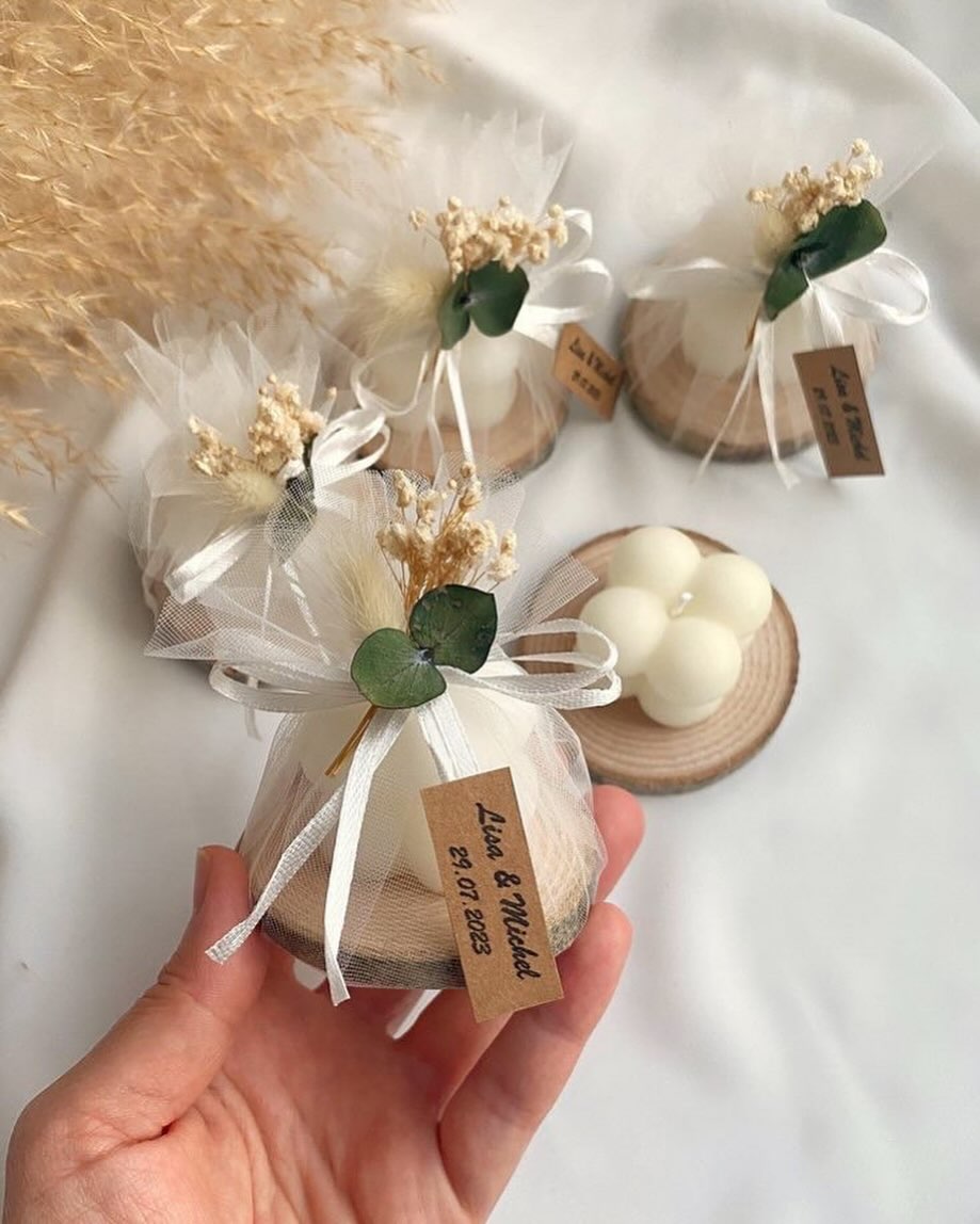 Croyez-nous, vos invités de mariage vont briller de plaisir en découvrant les petites bougies personnalisées et parfumées que nous vous proposons. Elles sont tout simplement parfaites pour les gâter avec un cadeau de mariage original et inoubliable.