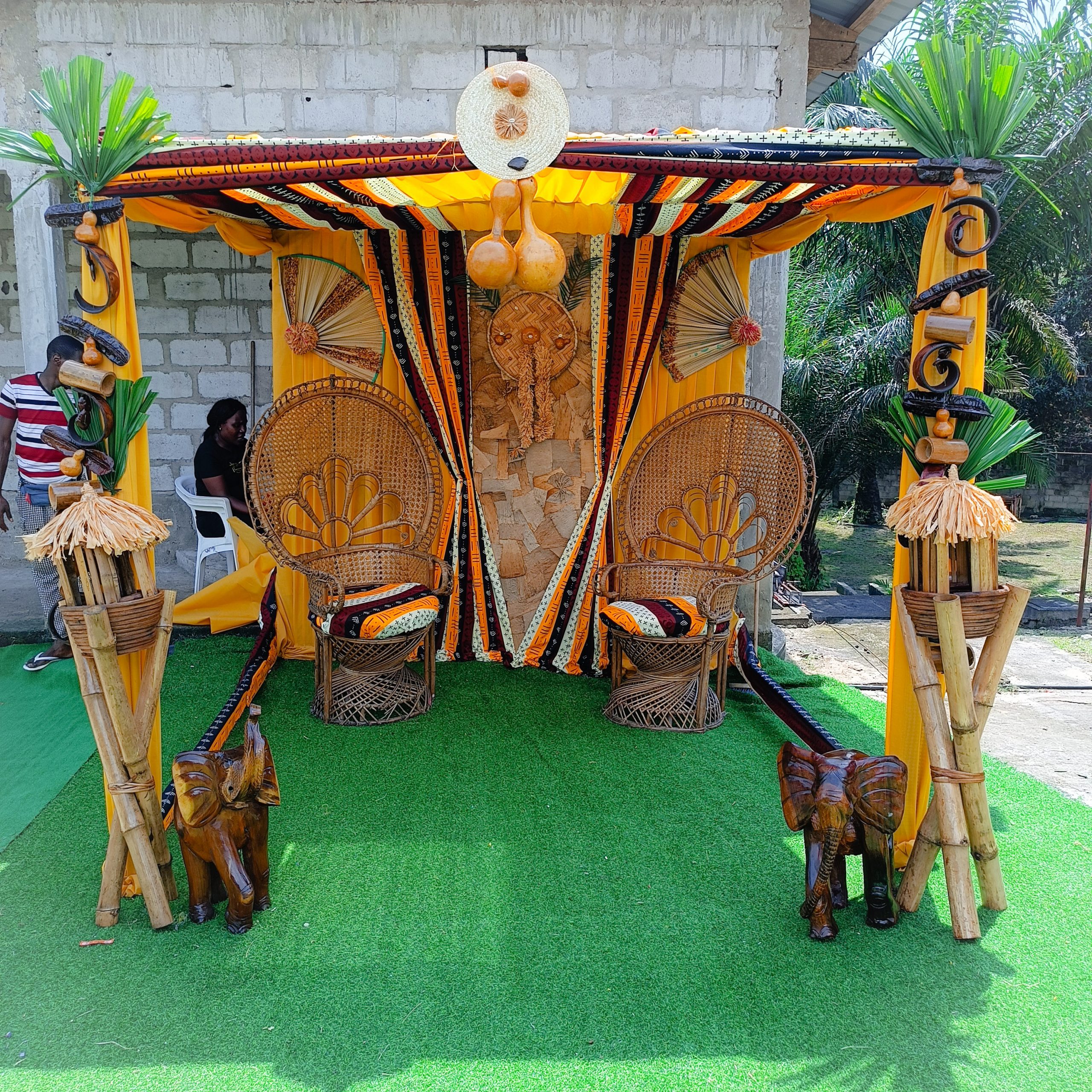 Pour toutes décoration mariage coutumier (huttes, espace pourparlers, espace repas)