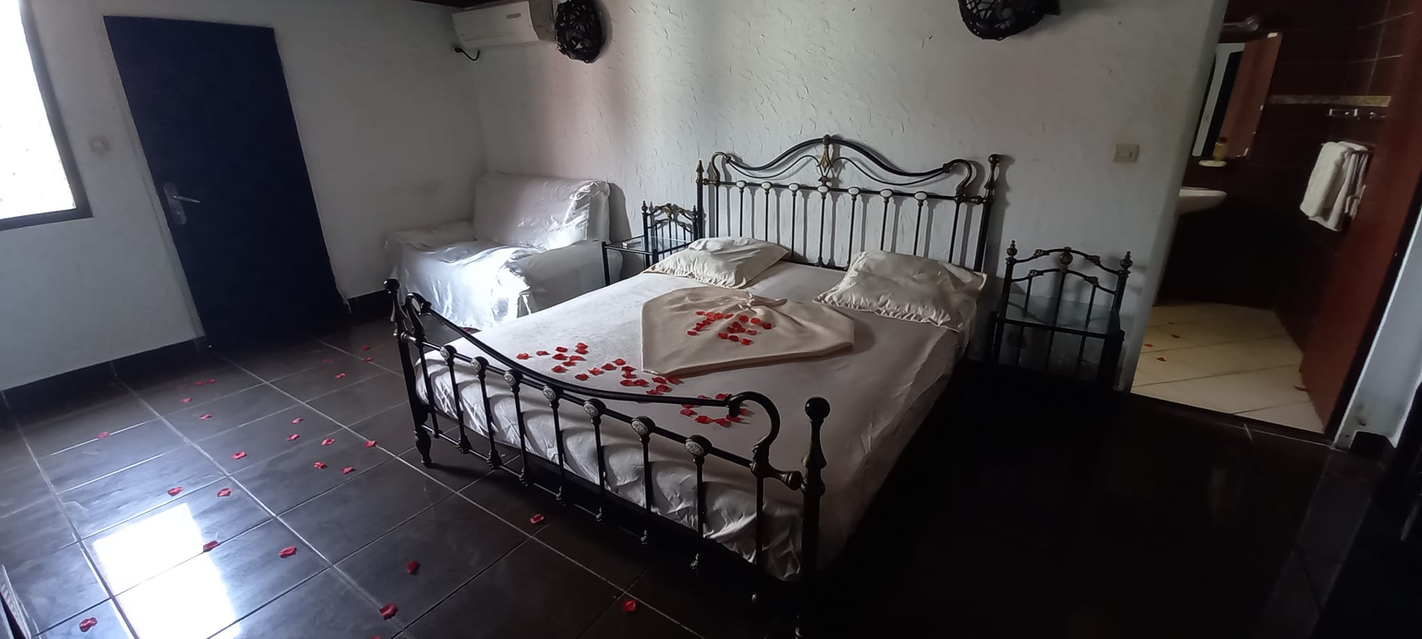 * 1 Chambre Nuptiale sur place Hors Tarif : Possibilité d’Organiser le Mariage Coutumier en profitant d’un espace extérieur pour les pourparlers, d’une salle Climatisée pour le diner et de ses toilettes ou le même jour que le civil.